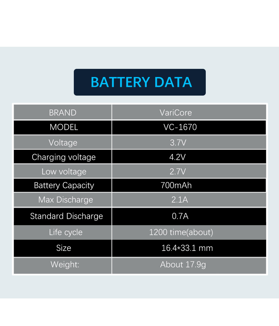 Nominal capacity: 700mAh