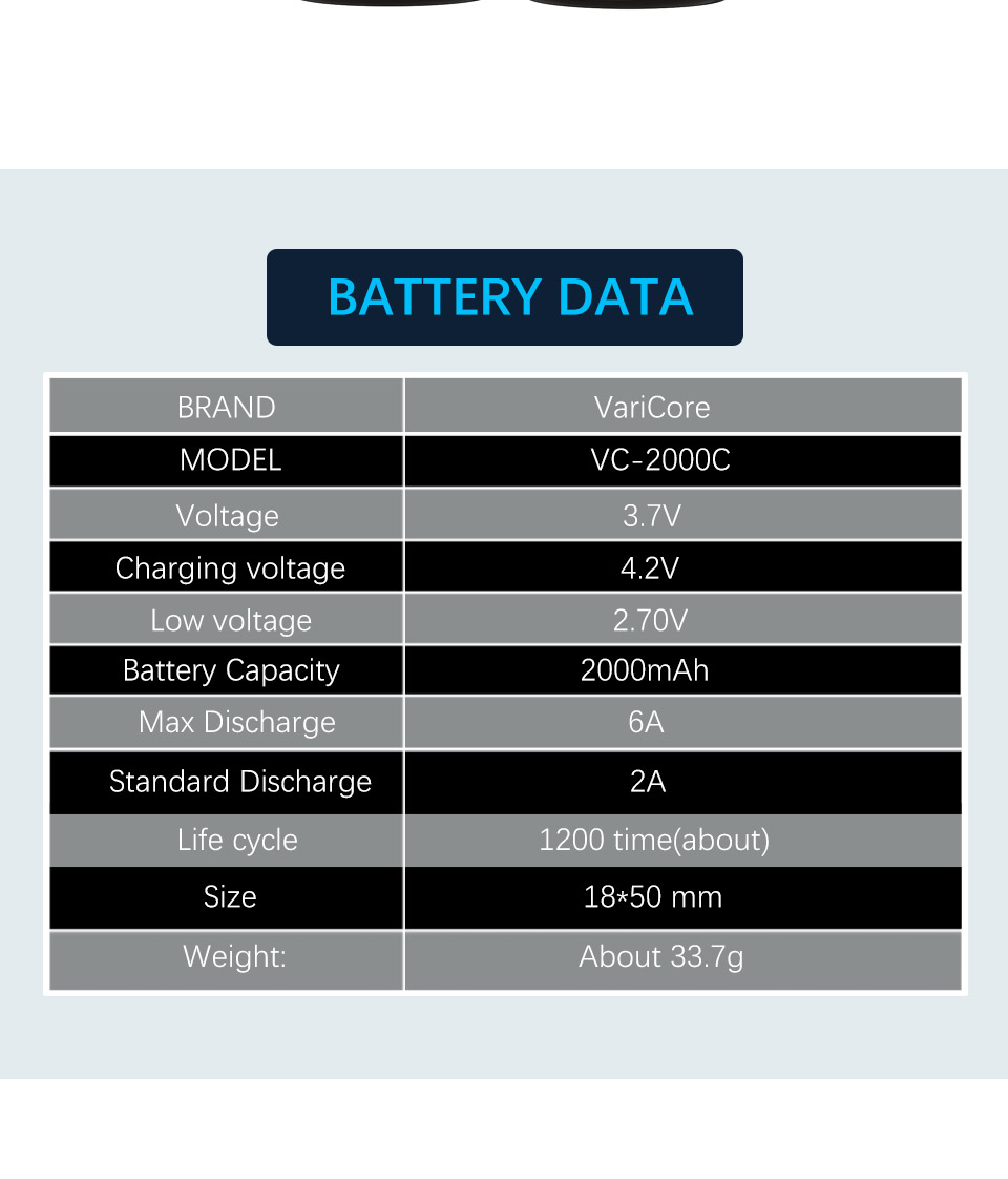 Nominal capacity: 2000mAh
