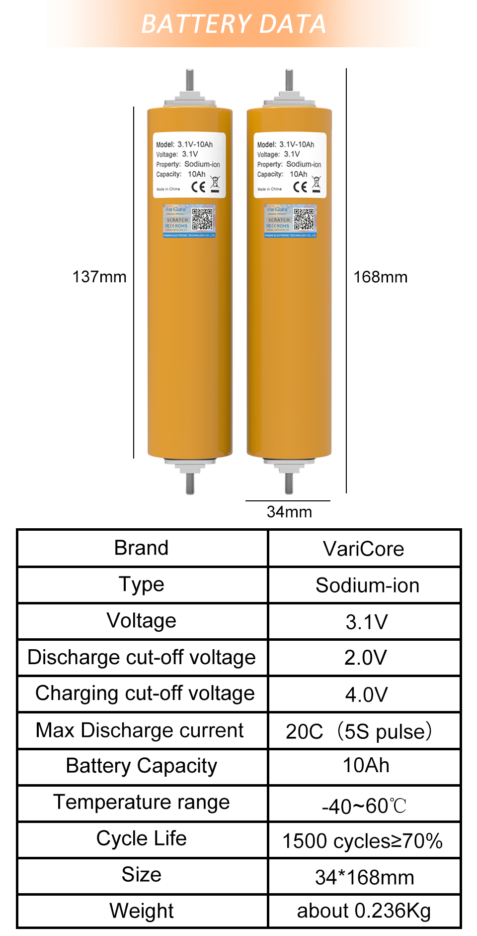 Model:3.1V-10Ah