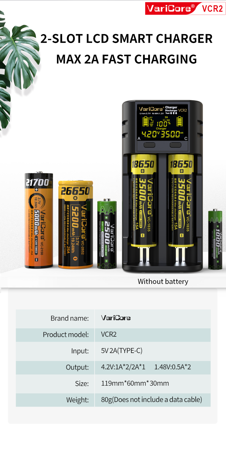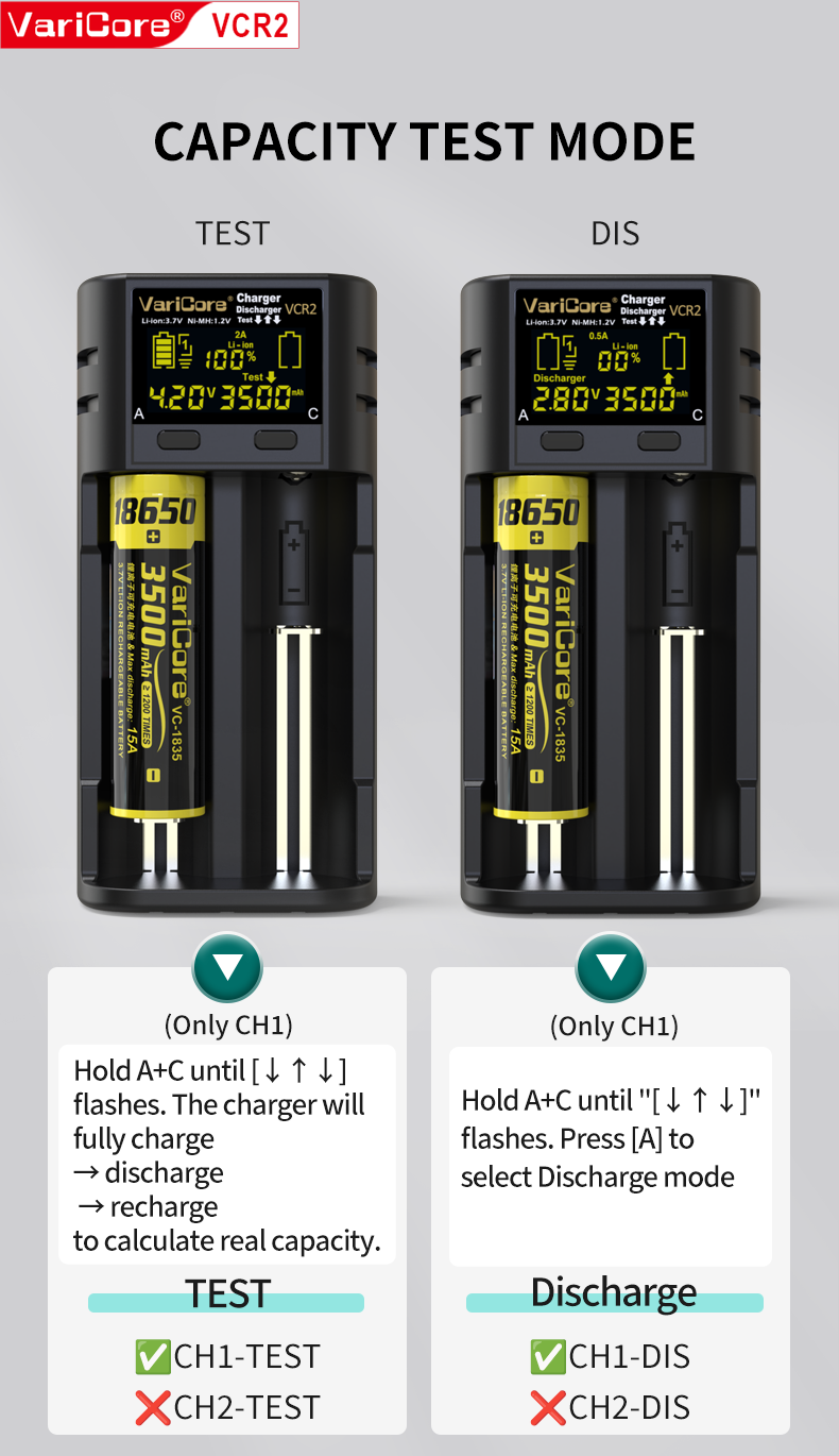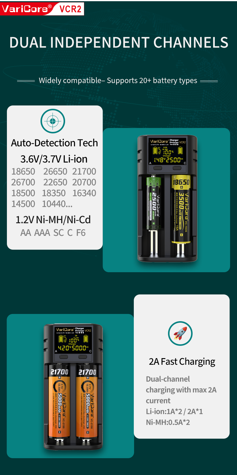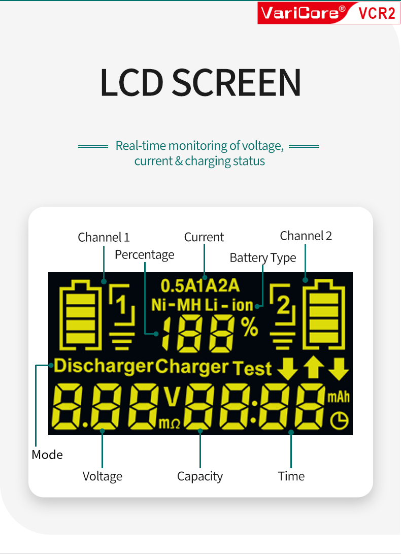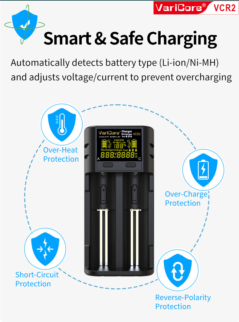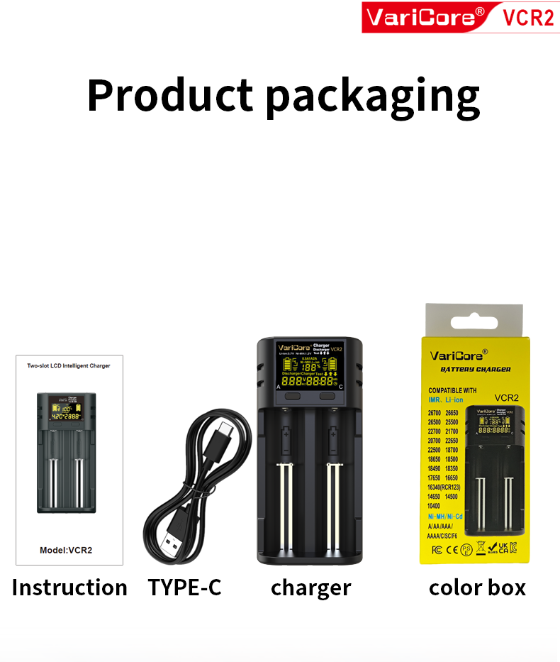 VCR2 Smart Charger For 18650 26650 21700 AA AAA